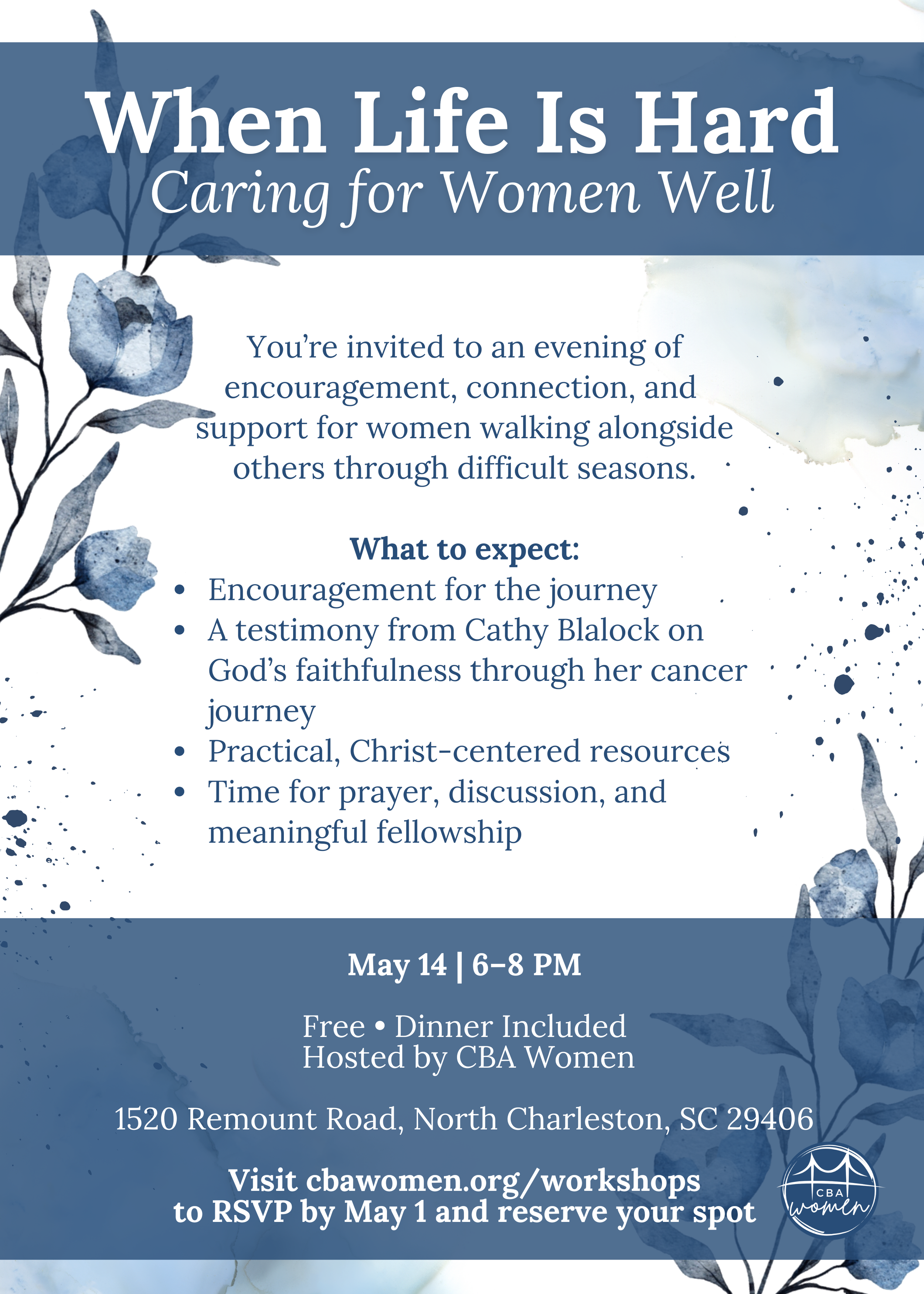 Join us for an intimate gathering this spring with other women who are walking alongside others through life’s hardest seasons.